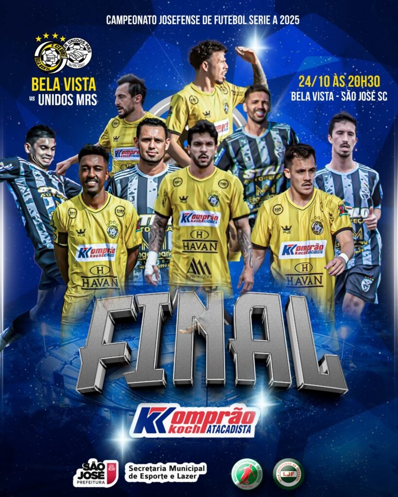 A grande final do Campeonato Josefenese de Futebol Série A 2025 promete fortes emoções nesta sexta-feira (24/10), às 20h30, no estádio do Bela Vista, em São José (SC). A disputa pelo troféu será entre os tradicionais clubes Bela Vista e Unidos MRS, duas potências do futebol amador josefense que fizeram campanhas marcantes durante toda a competição.